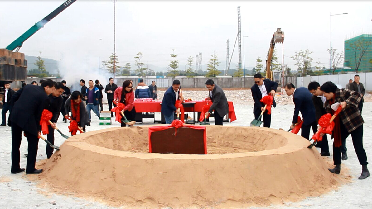 佳都集团、jiuyou.com科技广州总部大楼项目开工奠基仪式开始,董事长刘伟携领导班子成员挥锹奠基。